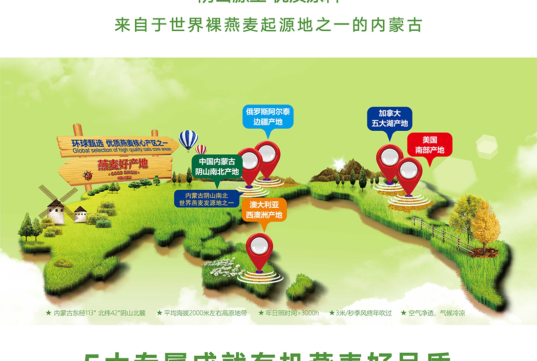 內(nèi)蒙古,世界裸燕麥起源地之一;陰山源生燕麥在初出生滿足生長規(guī)律一切所需,高寒、高海拔、日照充足;遵循自然法則,靠天滋養(yǎng),自然生長;