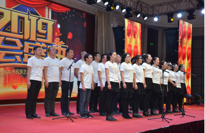 晚會(huì)在民族藝術(shù)劇院頂碗舞《吉祥》的婀娜舞姿中拉開序幕,在詩(shī)朗誦《創(chuàng)業(yè)十年頌、真情灑民豐》的激情澎湃里推向高潮,在大合唱《走向輝煌》的雄厚歌聲里落下帷幕。